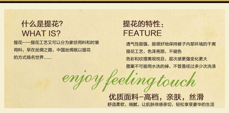 | 面 料 | 60支全棉提花 | 适用人群 | 自用,送礼,婚礼,乔迁 | ||